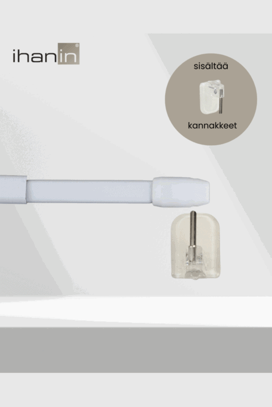 Tuo verhoihin ja ikkunoihin tyylikäs ja viimeistelty ilme Cafe-mini verhotangolla. Valkoinen väri on yksinkertainen, mutta tyylikäs ja ajaton, sopii niin klassisiin kuin moderneihinkin sisustustyyleihin ja erilaisiin verhoihin. Yhdistä käytännöllinen tapa ripustaa verhot ja sisustuksellinen elementti kodin tiloihisi cafe-verhotangolla. Luo harmoninen kokonaisuus saman värisillä Cafe-mini kannakkeilla. Tanko on säädettävissä 75-125cm välillä ja putken halkaisija on 11/ 13 mm. Pakkaus sisältää kannakkeet (2 kpl).