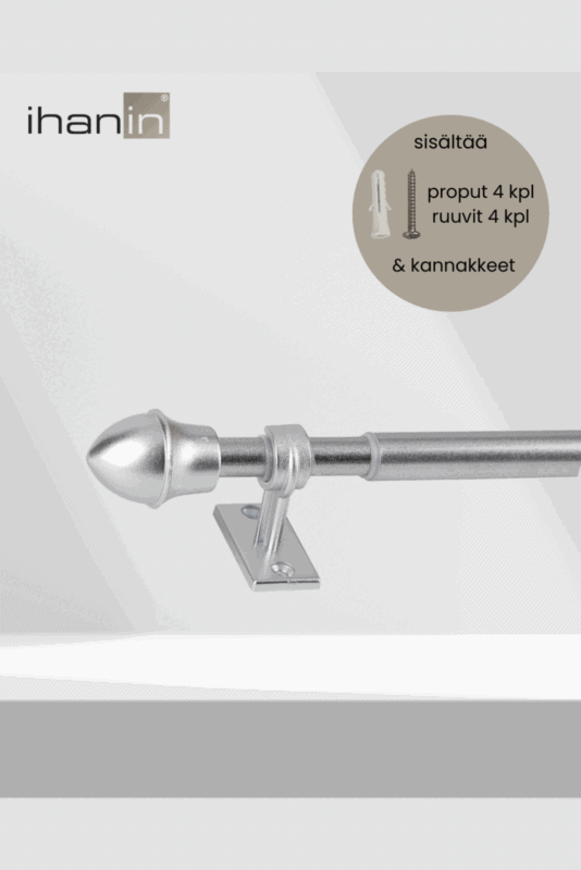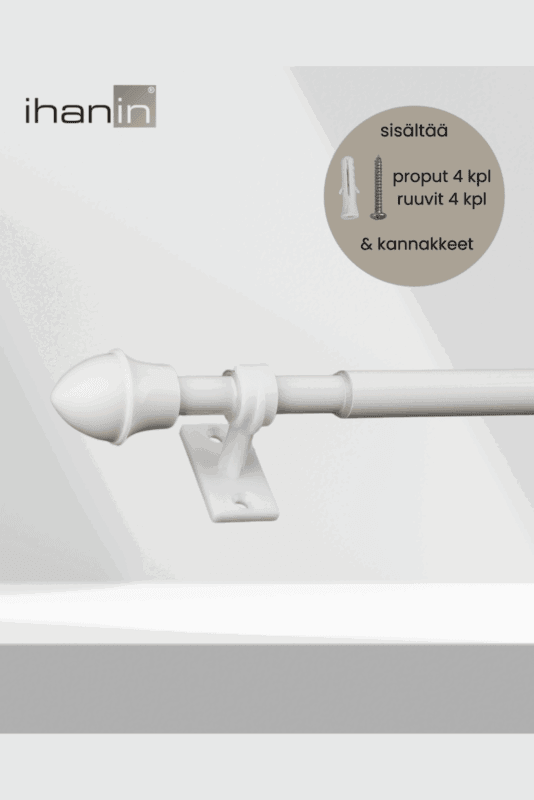 Tuo verhoihin ja ikkunoihin tyylikäs ja viimeistelty ilme Cafe-verhotangolla. Yhdistä käytännöllinen tapa ripustaa verhot ja sisustuksellinen elementti kodin tiloihisi helposti asennettavalla cafe-verhotangolla. Luo harmoninen kokonaisuus saman värisillä Cafe-verhorenkailla. Tanko on säädettävissä 75-125cm välillä ja putken halkaisija on 11/ 13 mm. Pakkaus sisältää kannakkeet (2 kpl), ruuvit (4 kpl) ja proput (4 kpl).